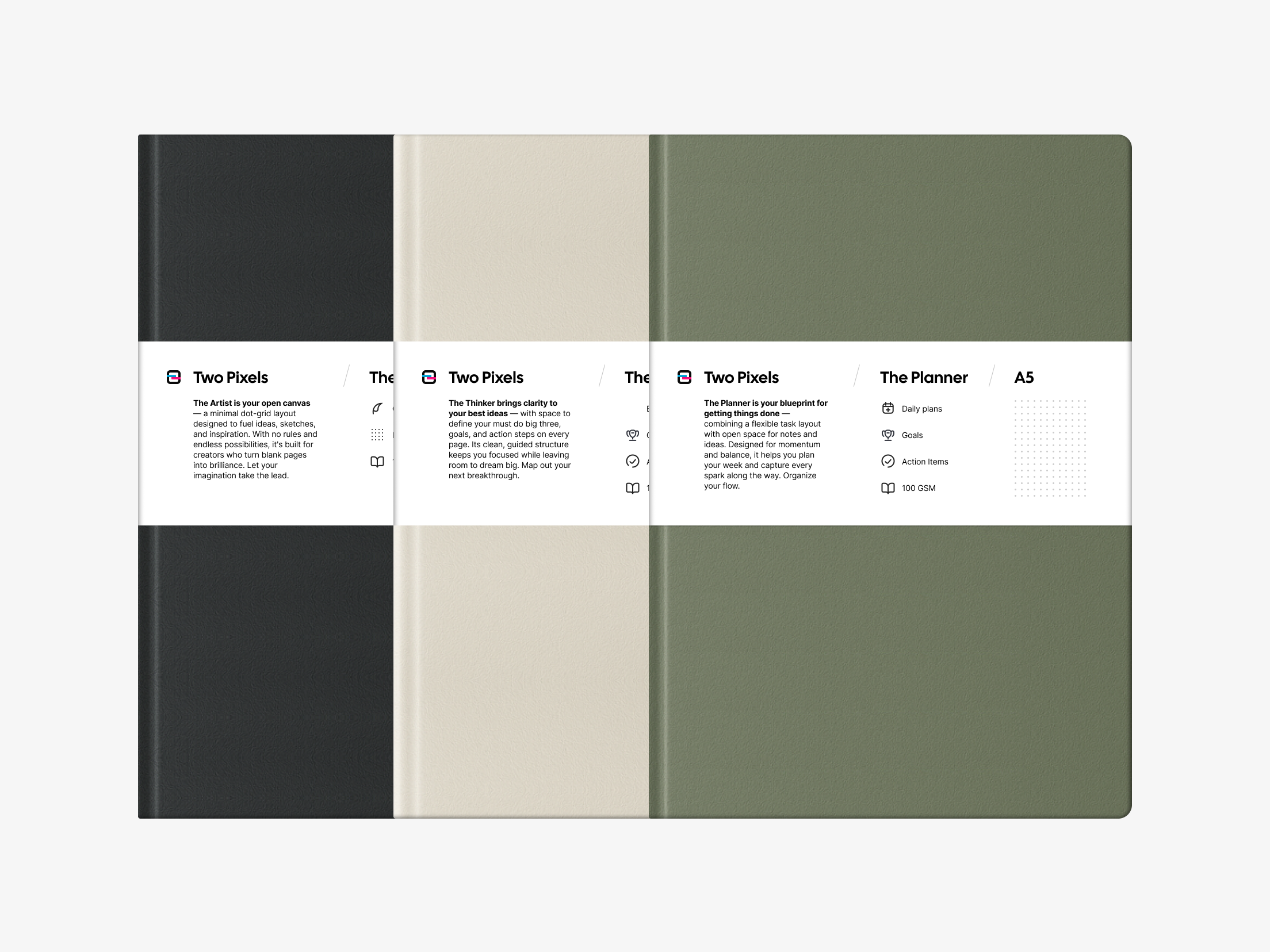 My first physical product — a set of thoughtfully designed notebooks built to balance flexibility and structure. Created to adapt to different personalities and workflows, they’re made to help you organize chaos and take control.