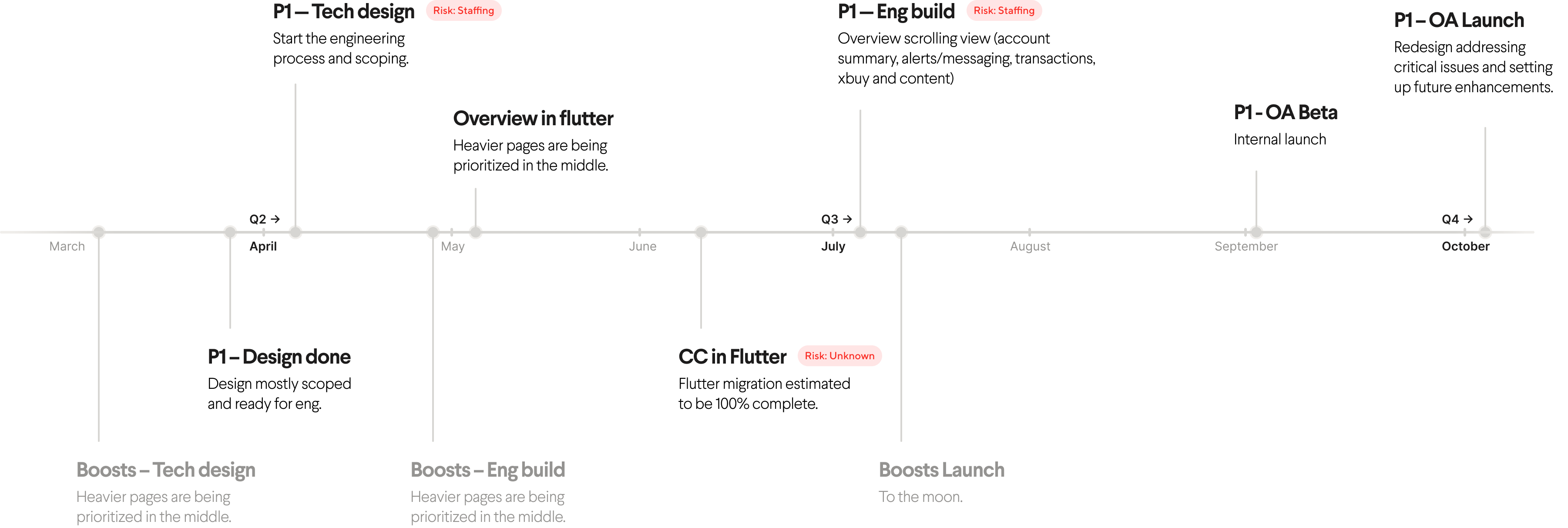 To get alignment for the work, I partnered closely with engineering to develop a realistic roadmap. In addition, we created a set of phases and priorities. This roadmap gave us the ammunition to get internal buy-in, solidify the roadmap, and approve additional headcount.