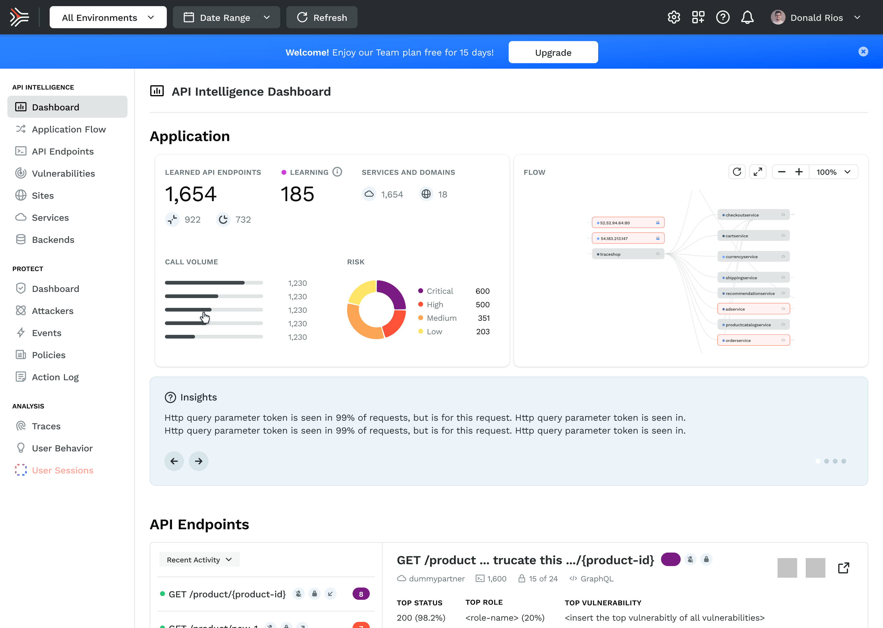 The only way to protect and mitigate risk of a client’s application and APIs is to be intimately close to the inner working of how it operates. Taking a page out of the founder’s previous company, we provided a service that tracked, monitored, and connected the dots throughout a customers application. From this dashboard, customers could monitor health from the 1 foot to 1,000 foot point of view, then address issues.